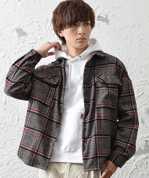 オーバーサイズシャツジャケット シャツジャケット メンズ オーバーサイズ チェック ウール コート ラグスタイル Luxstyle Magaseek